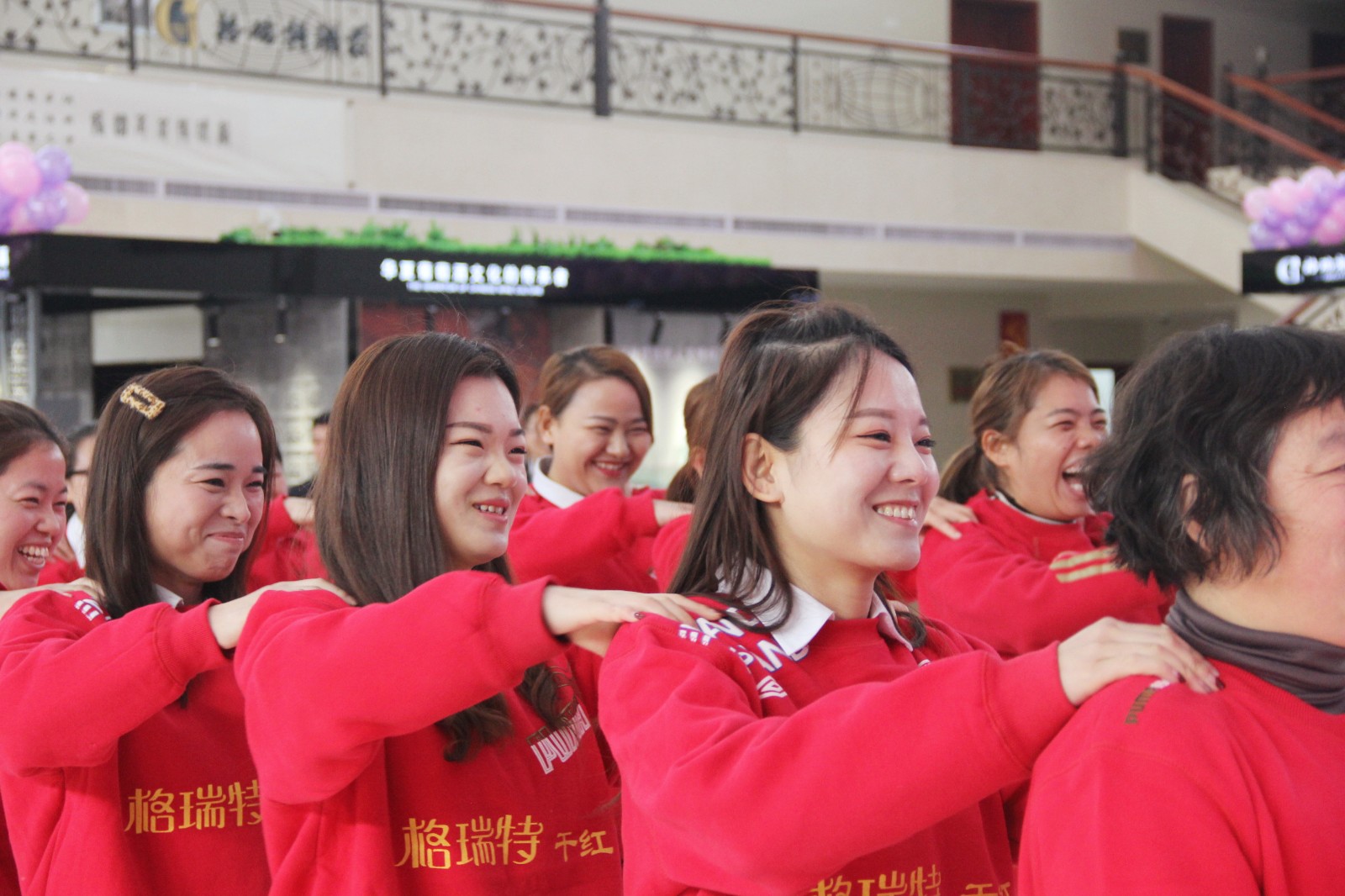 頒獎之后,所有女神們圍成了一個同心圓,與相鄰伙伴手牽手,根據(jù)主持人的口令做出花開與花謝的動作,象征格瑞特酒莊團結一致,并預祝格瑞特酒莊明天更加燦爛。