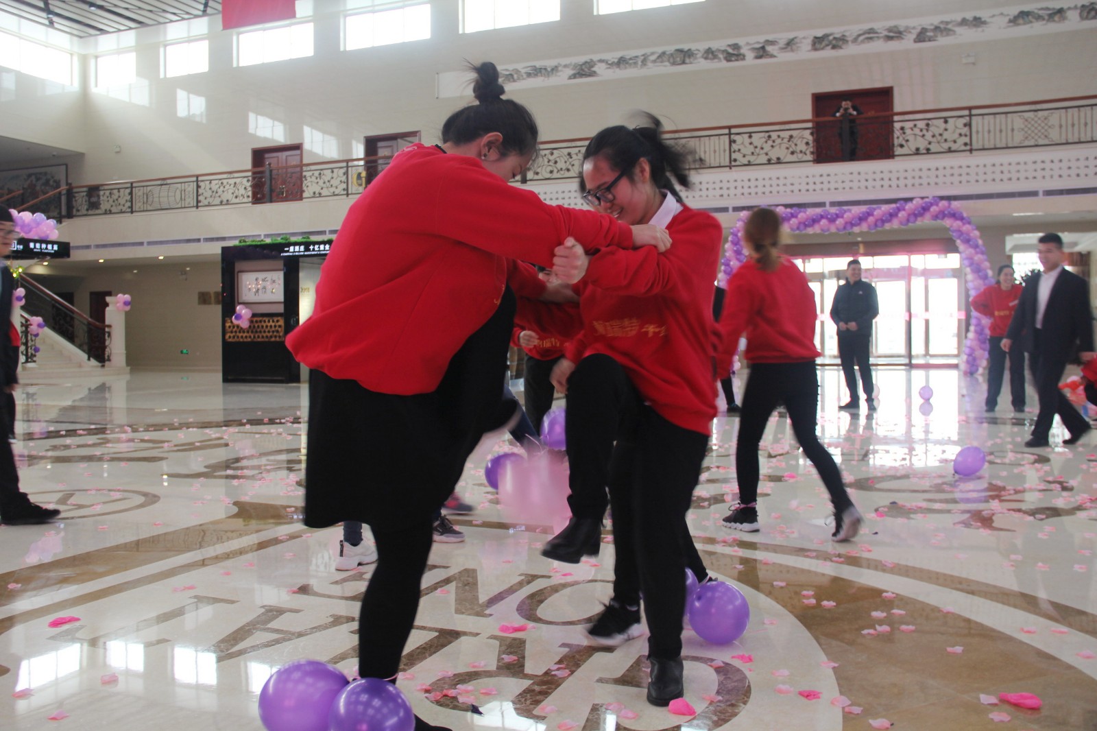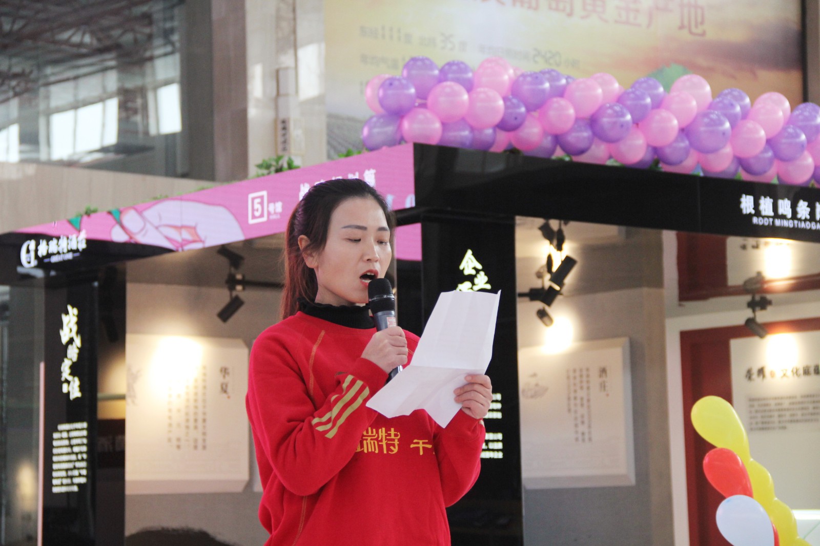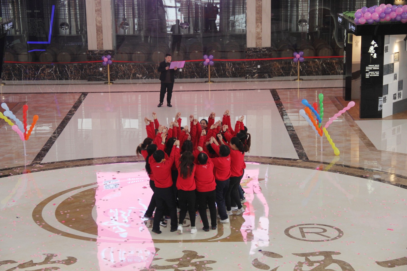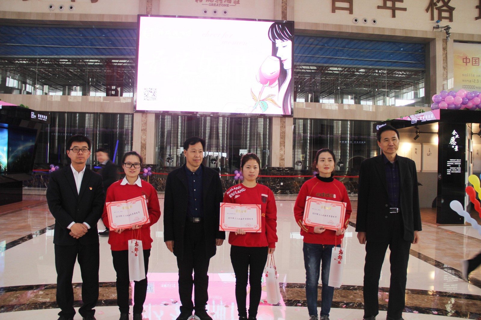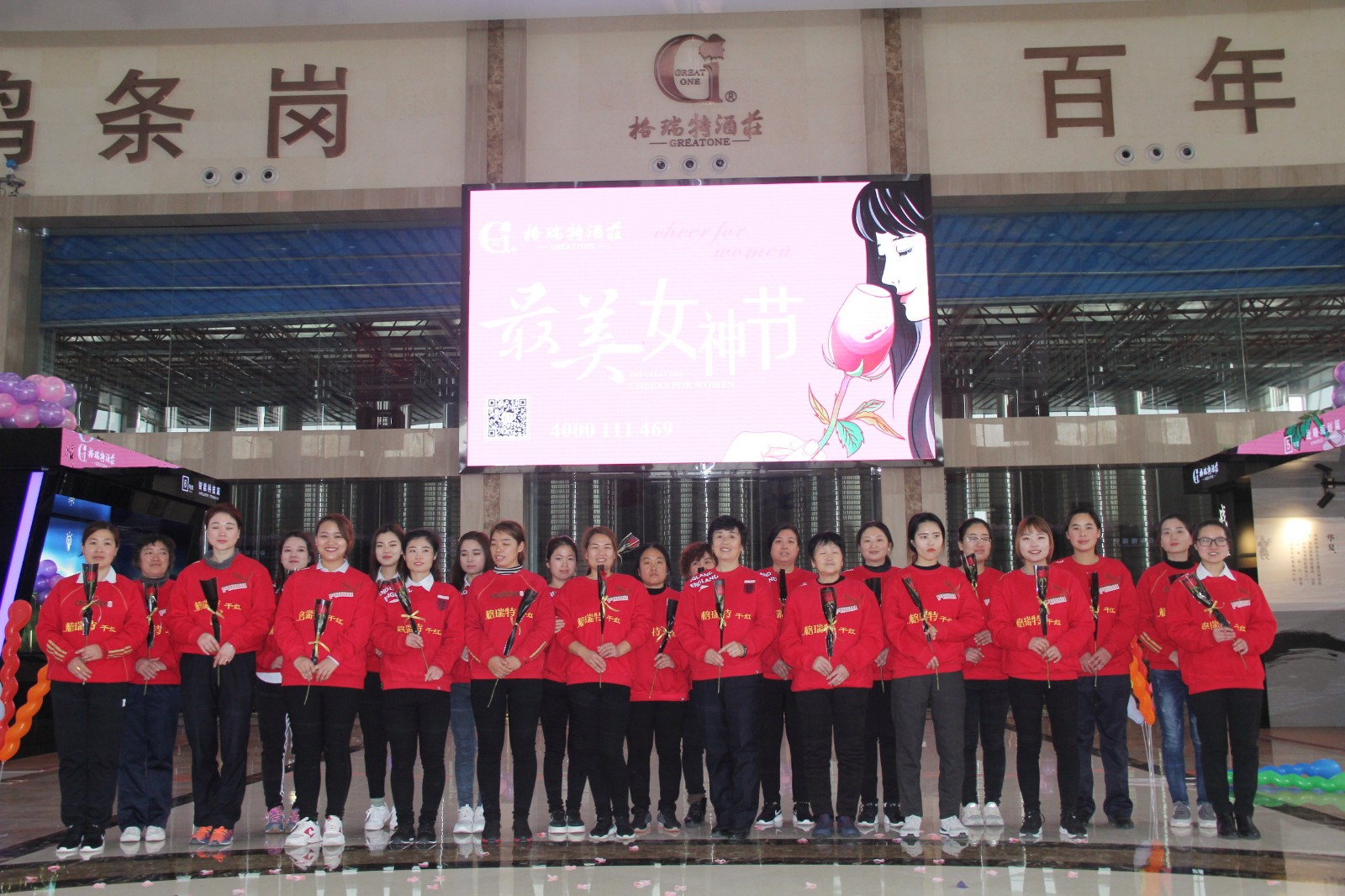 在3月8日上午9:00整,酒莊所有女同志穿著統(tǒng)一服裝齊聚格瑞特酒莊文化大廳,隨著開場音樂的響起,“最美女神節(jié)”活動正式拉開了帷幕。主持人宣布格瑞特酒莊最美女神節(jié)活動正式開始,此次活動總共有七項議程。
