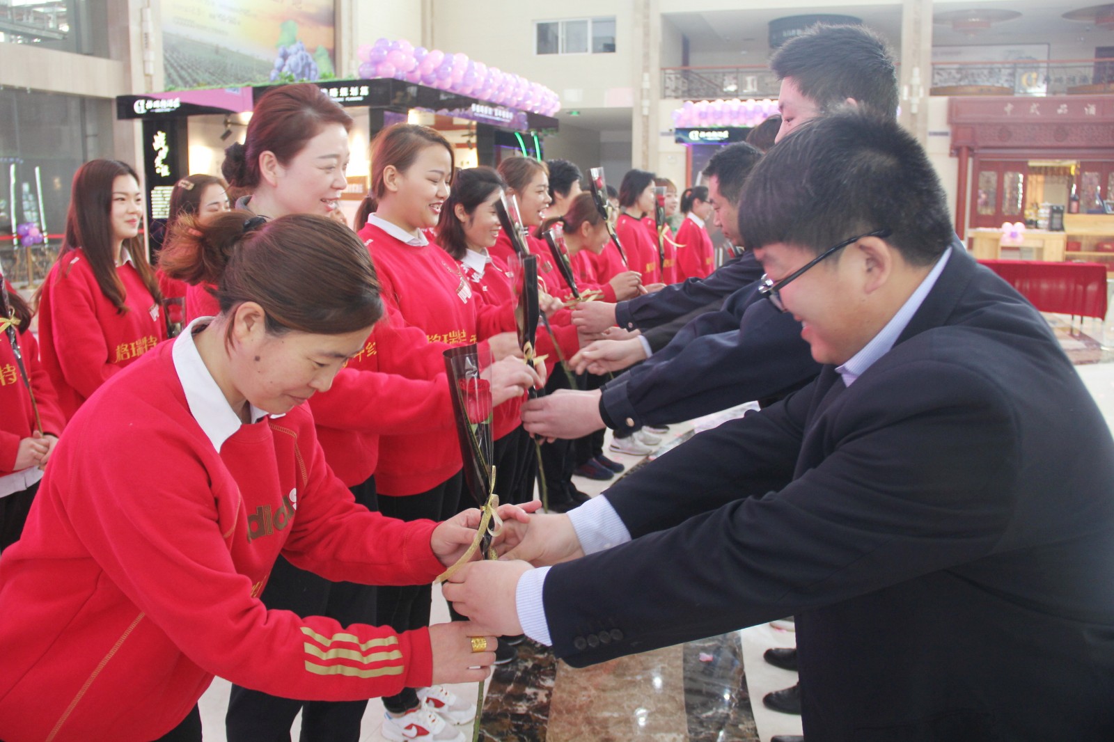 玫瑰綻放之后,格瑞特酒莊全體男同事為女神們獻出了最美鮮花,祝福她們節(jié)日快樂,在這一刻員工彼此之間的感情得到了進一步的升華。