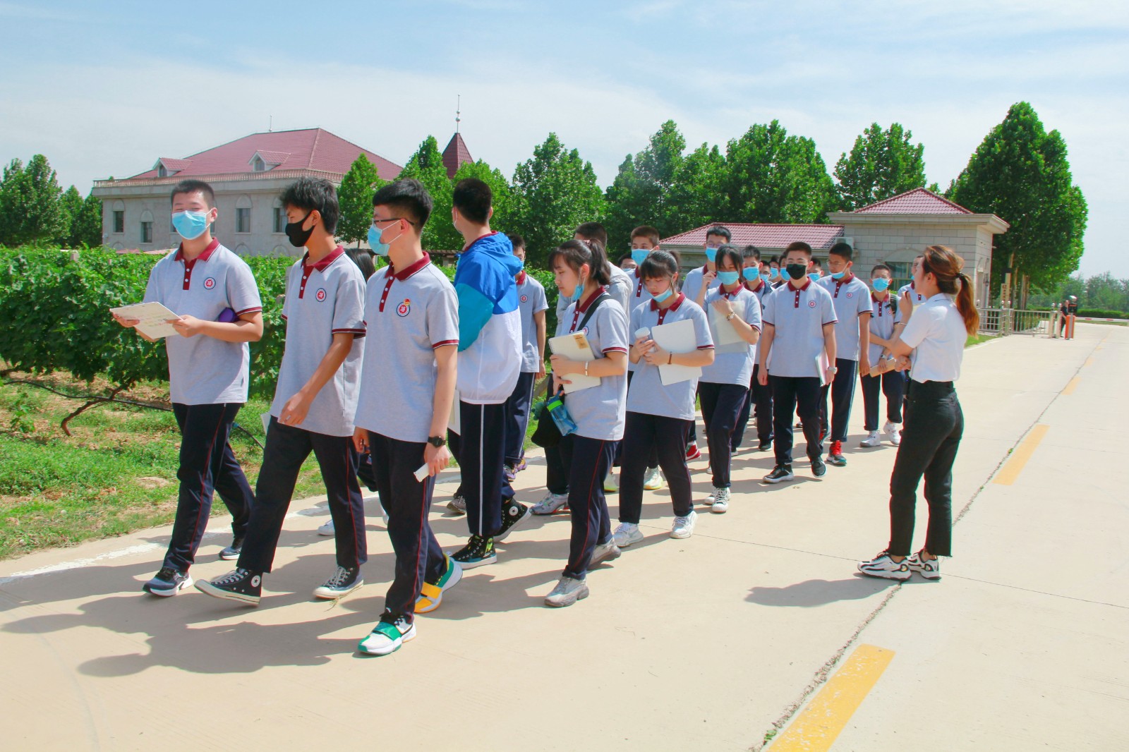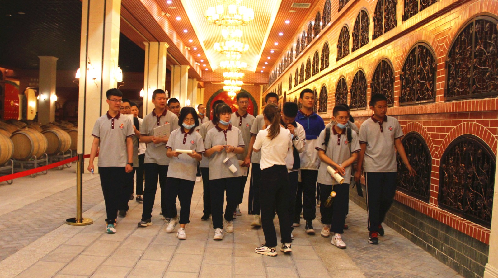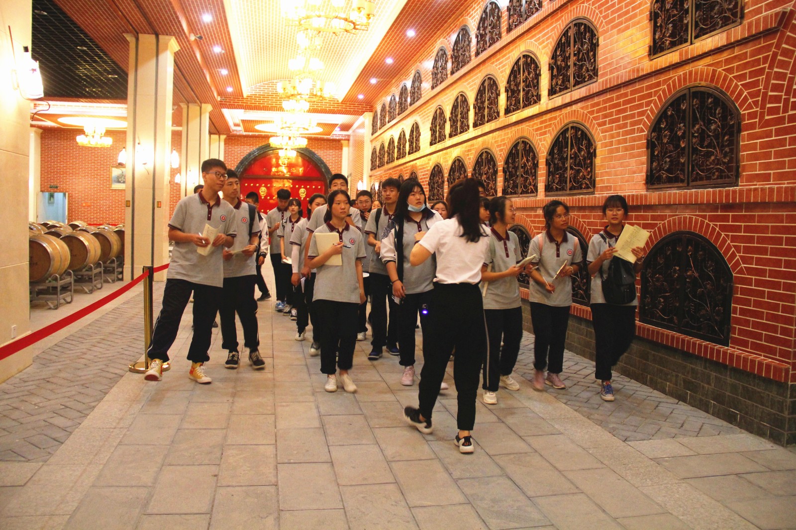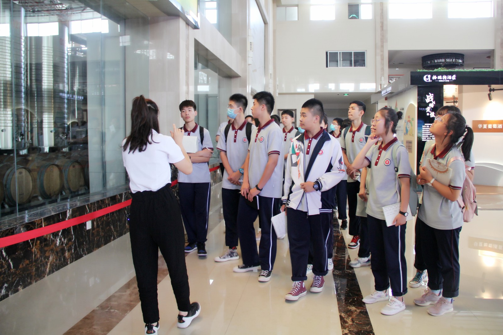 6月7日下午兩點(diǎn)半,東康一中的同學(xué)們和老師們來到格瑞特酒莊,進(jìn)行社會(huì)實(shí)踐活動(dòng)。同學(xué)們被分成兩支隊(duì)伍,對(duì)酒莊內(nèi)的多處景觀進(jìn)行輪流參觀。
