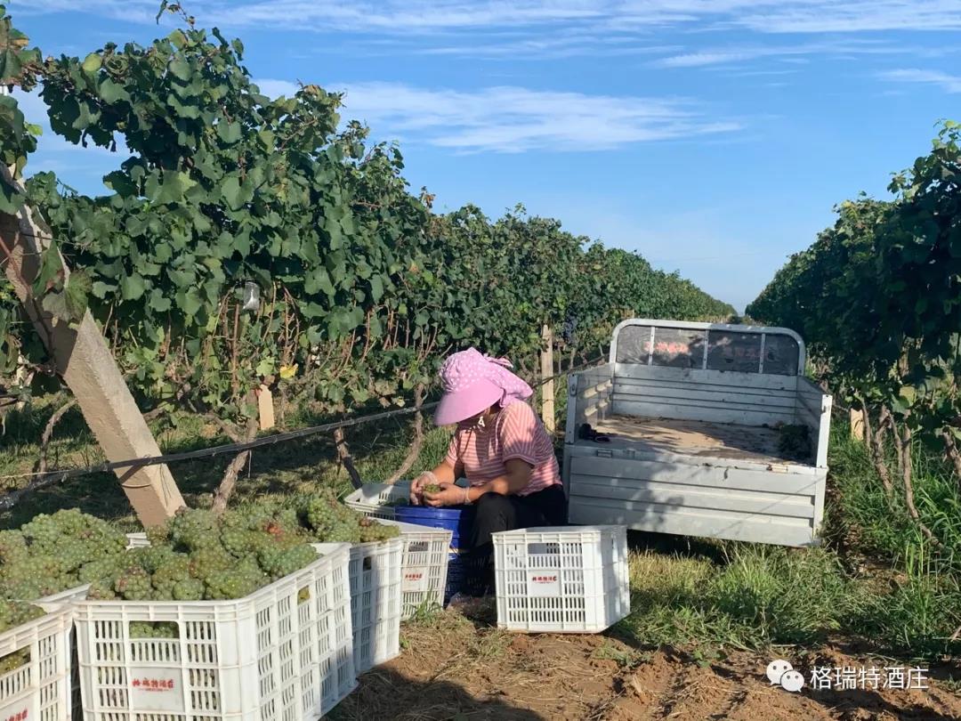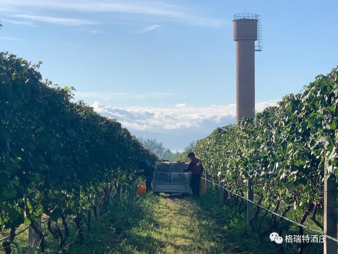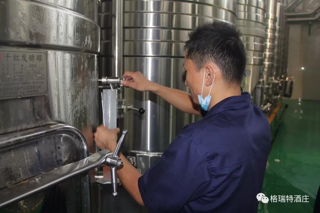 從采摘到進(jìn)罐發(fā)酵,整個(gè)過(guò)程是即時(shí)和快捷的,格瑞特酒莊能做到這一點(diǎn),得益于酒莊+基地+農(nóng)戶的產(chǎn)業(yè)模式,園區(qū)內(nèi)如此大面積的葡萄種植園全部為酒莊自營(yíng),全標(biāo)準(zhǔn)化的園區(qū)設(shè)計(jì)為機(jī)械化操作打下了堅(jiān)實(shí)基礎(chǔ),統(tǒng)一的種植管理規(guī)范和操作技術(shù)要求以及持續(xù)不斷的技術(shù)培訓(xùn)工作,既保證了葡萄的高品質(zhì),又踐行了那句土地變綠色工廠,農(nóng)民轉(zhuǎn)產(chǎn)業(yè)工人的企業(yè)愿景。