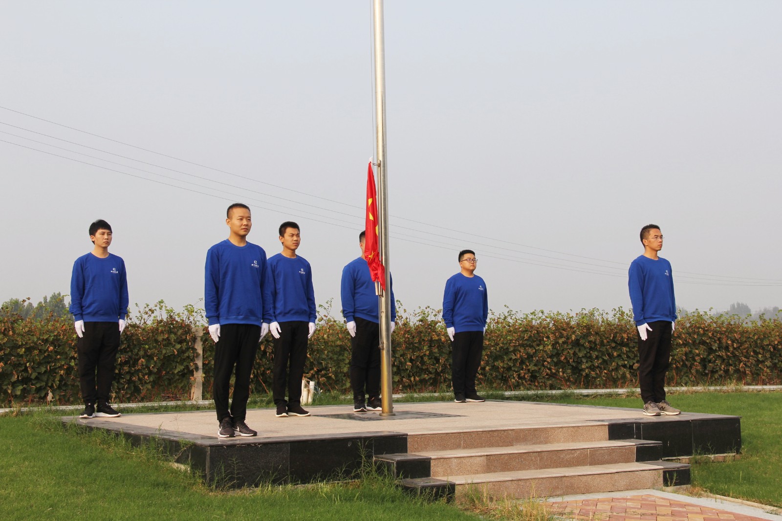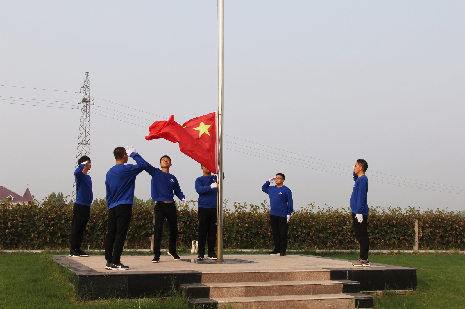 在眾人的注目下,旗手莊嚴(yán)地升起了五星紅旗。全體人員心潮澎湃、豪情滿懷,共同祝愿偉大的祖國繁榮昌盛,共同祝愿全國人民幸福安康!