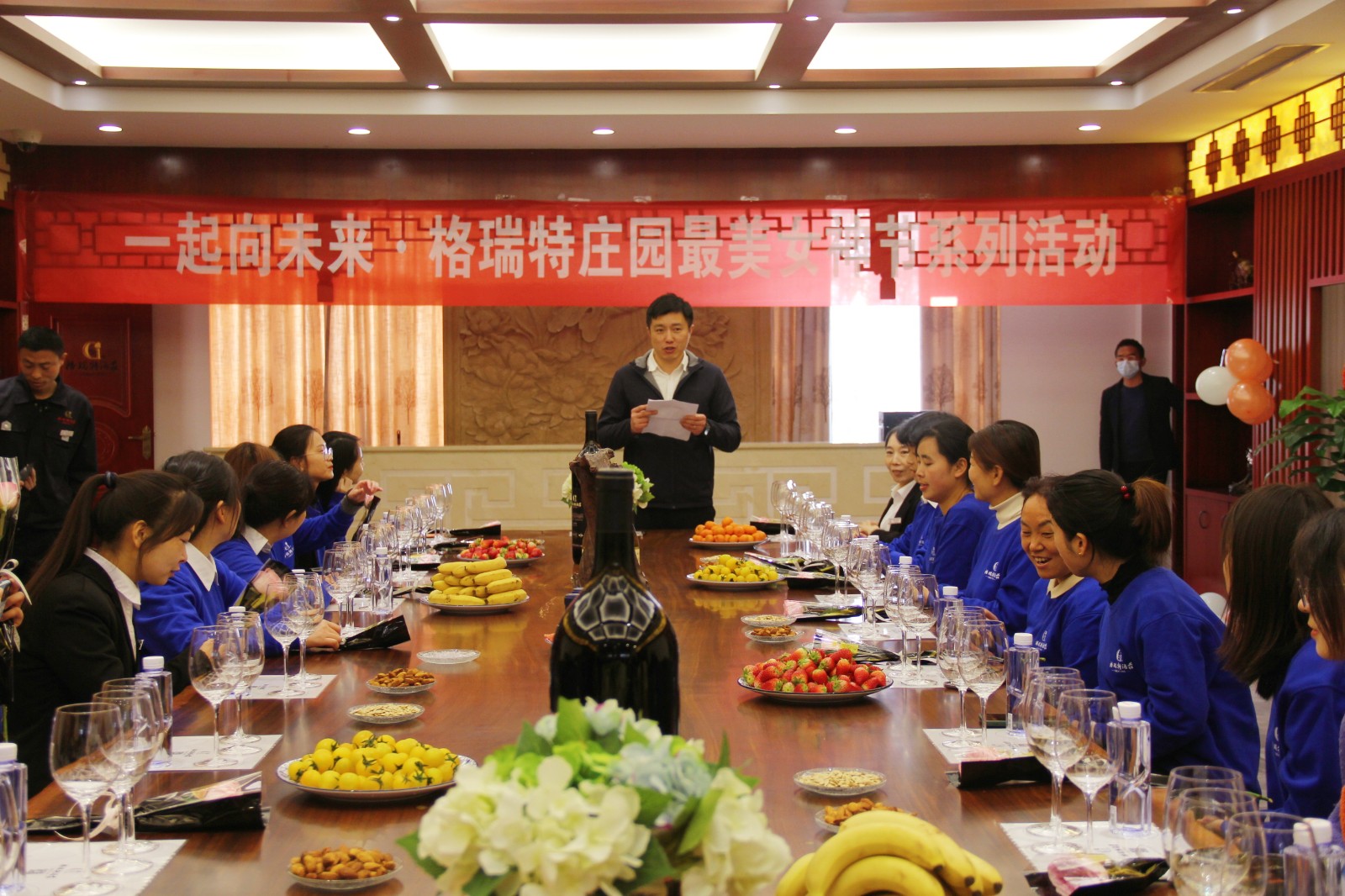 在3月8日上午9:00整,莊園所有女神們穿著統(tǒng)一服裝齊聚格瑞特酒莊文化大廳,進(jìn)行分組,分組完成后,“最美女神節(jié)”活動正式拉開了帷幕。此次活動總共有七項議程。