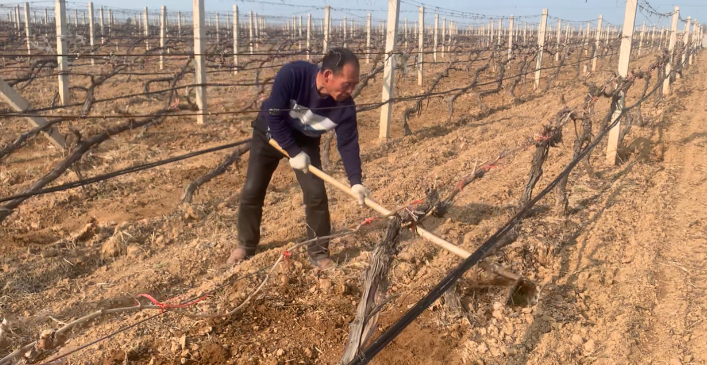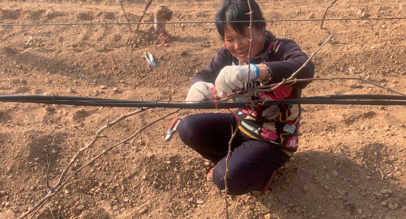 春分是破土而出的希望,也是農忙的好時節(jié),此時的格瑞特葡萄種植基地正在進行渠灌澆水、小苗綁繩上架、樹下干草清理等工作。葡藤出土后,要及時上架綁枝,枝條要均勻擺布到架面上,合理利用空間,不能交叉或重疊,同時綁枝時必須牢固,這樣既可以使葡萄受光均勻,也可以防止受到風災影響而掉下來影響葡萄生長,綁繩上架的葡藤讓格瑞特葡園更加規(guī)范化、標準化。